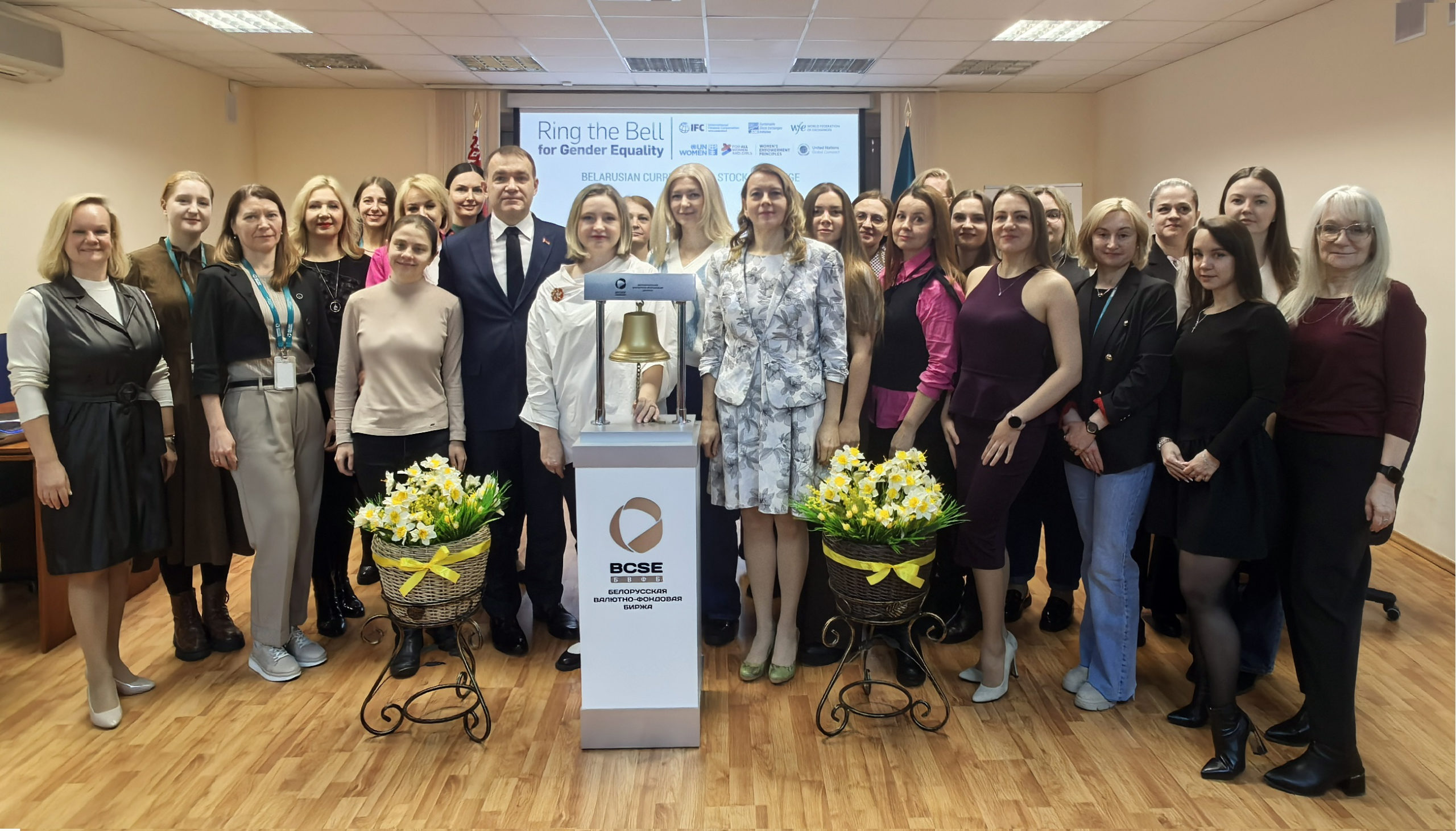 В рамках празднования Всемирного Дня женщин 6 марта 2026 года ОАО «Белорусская валютно-фондовая биржа» провело очередное ежегодное мероприятие «Ring the Bell for Gender Equality», ознаменовавшее торжественное открытие торгового дня символическим «ударом» в биржевой колокол. Тема этого года – «Права. Справедливость. Действия. Для ВСЕХ женщин и девочек».